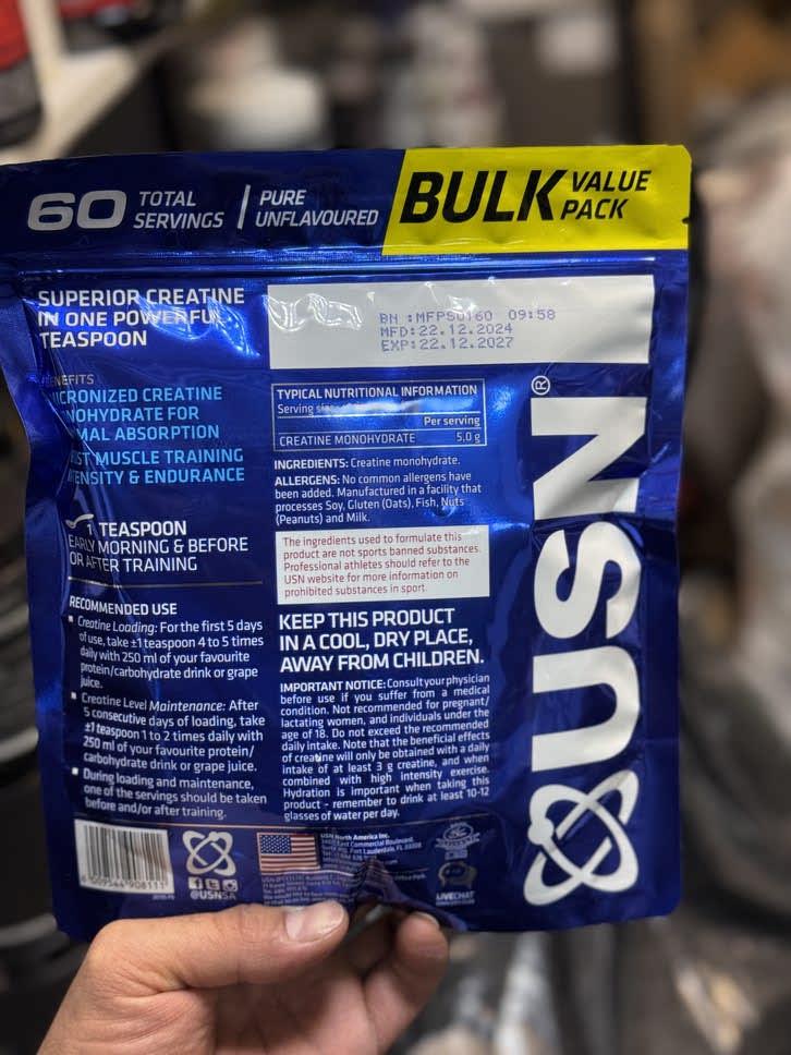 پودر کراتین مونوهیدرات خالص یو اس ان USN PURE CREATINE MONOHYDRATE یک مکمل غذایی است که عملکرد ماهیچه ها را در طول تمرینات مقاومتی کوتاه و شدید بهبود می بخشد. ورزشکارانی که از این مکمل استفاده می کنند، در طول تمرینات قدرتی، به ویژه دوچرخه سواری و وزنه برداری، عملکرد بهتری دارند.