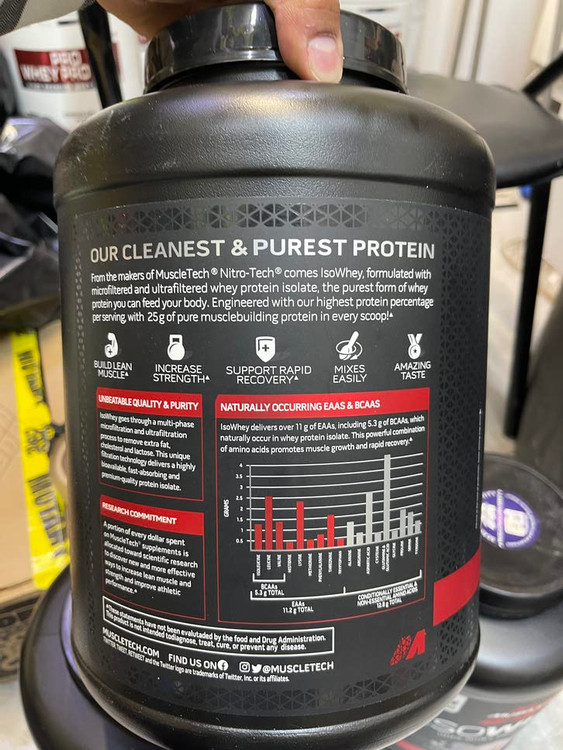 مکمل ایزوله ماسل تک آمریکا بیش از 11 گرم اسیدهای آمینه ضروری (EAAs) و بیش از 5 گرم آمینو اسیدهای شاخه دار (BCAAs) را ارائه می دهد که به طور طبیعی در ایزوله پروتئین وی وجود دارد. این ترکیب قدرتمند موجود در ایزو وی MUSCLETECH از اسیدهای آمینه به رشد عضلات و بهبود سریع کمک می کند.