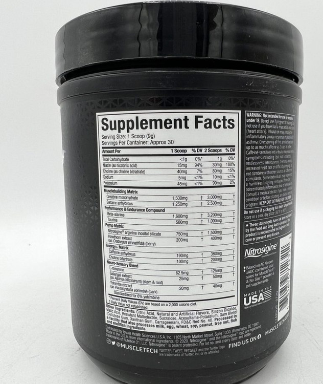 این مکمل، مقدار 380 میلی گرم کافئین را به شما ارائه می دهد تا انرژی زیادی را برای تمرینات بدست آورید. این مقدار تقریباً به میزان 4 فنجان قهوه ی غلیظ می باشد. این مکمل، دوز بالایی از ال سیترولین، آرژنین AKG را ارائه می دهد .