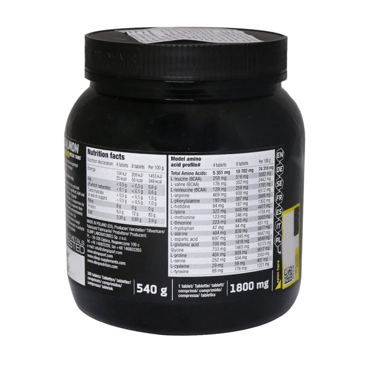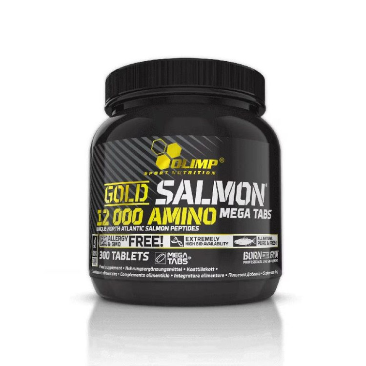 قرص آمینو گلد سالمون 12000الیمپ OLIMP Gold Salmon 12000 Mega منبعی سرشار از پروتئین حیوانی می باشد که علاوه بر کمک به عضله سازی از بروز چاقی در افراد جلوگیری می کند. این مکمل، محصولی کاملا طبیعی با ارزش غذایی بالا است که از پروتئین هیدرولیز شده ماهی سالمون اقیانوس اطلس شمالی به دست آمده است و از حداقل محتوای چربی کمتر از 0.1 گرم در هر وعده برخوردار می باشد و فاقد بوی ماهی است.