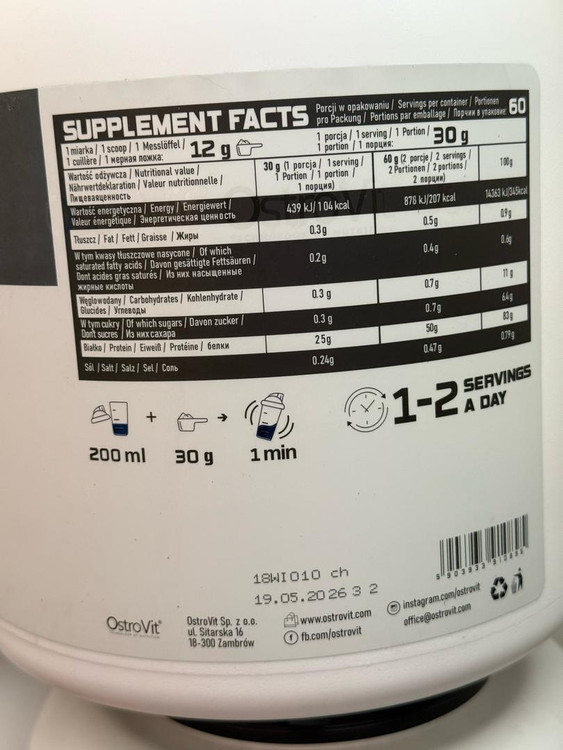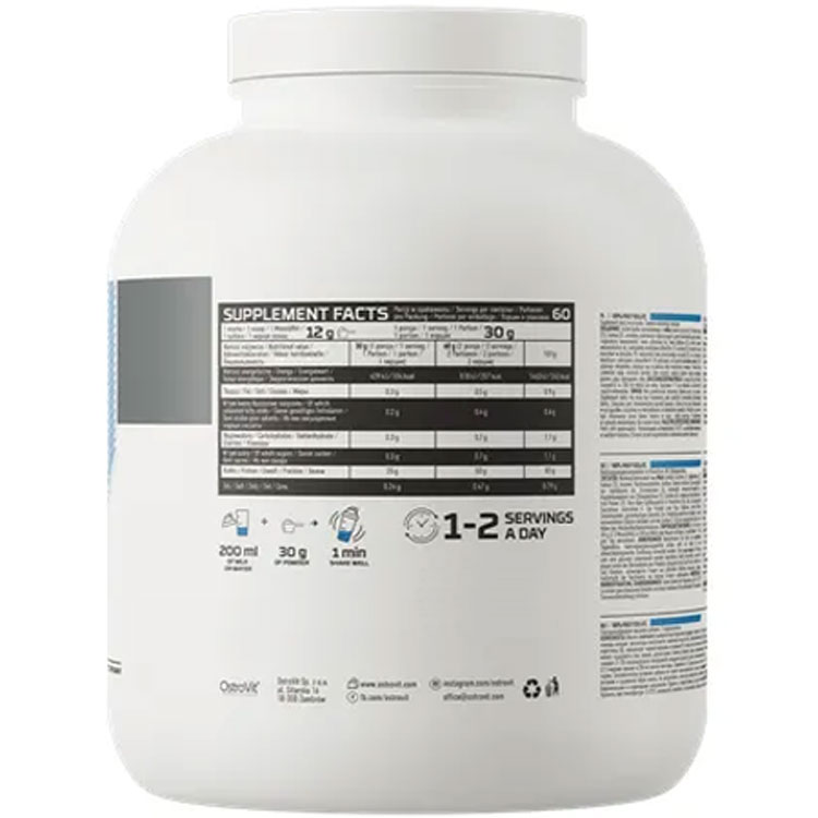 ایزوله پروتئین وی استرویت 1800 گرم OstroVit 100% Whey Isolate یکی از مکمل هایی است که از ایزوله پروتئین وی با کیفیت بالا ساخته شده است به طوری که حاوی 83 درصد پروتئین است. این مکمل کم چرب و بدون قند اضافه شده است که به شکل پودر و با طعم های خوشمزه و متنوع ساخته شده است. این محصول برای ورزشکاران و افرادی است که نیاز به افزایش مصرف پروتئین دارند.