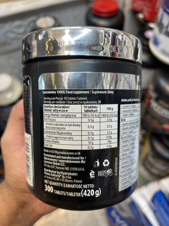 - ۱۴۰۰ میلیگرم BCAA شامل ۶۰۰ میلیگرم لوسین، ۳۶۵ میلیگرم ایزولوسین و ۴۳۵ میلیگرم والین