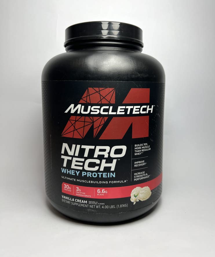 پروتئین وی نیتروتک با 3 گرم کراتین، می تواند عضله بیشتری نسبت به پروتئین به تنهایی بسازید. این مکمل از برند ماسل قدرت شما را افزایش می دهد و با هر بار فشار تمرین، انرژی عضلات لاغر را بیشتر ریکاوری می کند. همچنین این مکمل حاوی 6.7 گرم بی سی ای ای است که به بهبود سریعتر خستگی کمک می کند.