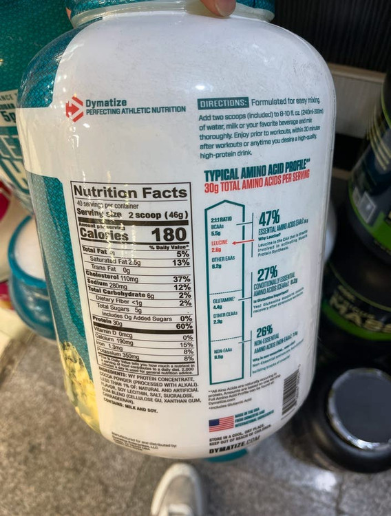 100 درصد پروتئین از کنسانتره پروتئین وی که دارای تمام آمینو اسیدهایی است که به طور طبیعی در پروتئین وجود دارند و شامل اسید گلوتامیک است.