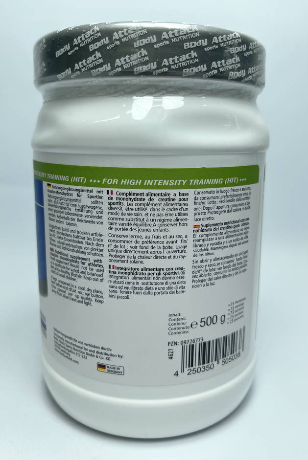 برند آلمانی Body Attack بهدلیل استانداردهای سختگیرانه تولید، تستهای آزمایشگاهی دقیق و کیفیت مواد اولیه، یکی از معتبرترین نامها در صنعت مکملهاست. این کراتین فاقد هرگونه افزودنی، مواد طعمدهنده، شکر یا مواد غیرضروری است و انتخابی ایدهآل برای ورزشکارانی است که به دنبال رشد عضله بدون چربی، قدرت انفجاری بیشتر و ریکاوری سریعتر هستند.