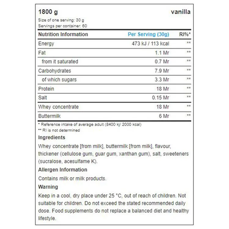 پروتئین وی آل نوتریشن ۱۸۰۰ گرم یک مکمل پروتئینی باکیفیت بر پایه وی کنسانتره خالص (WPC) است که با هدف افزایش توده عضلانی، ریکاوری سریعتر و تأمین پروتئین روزانه ورزشکاران تولید شده است.