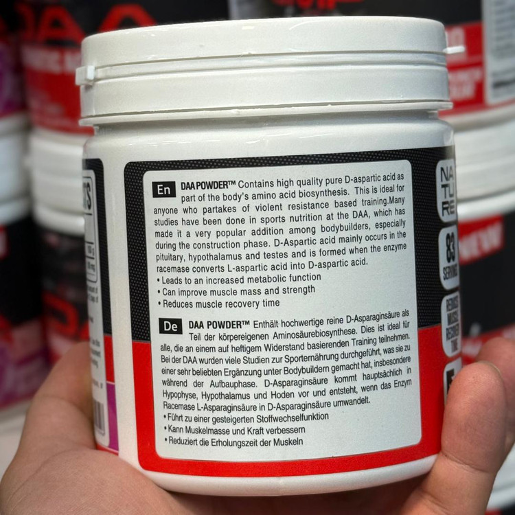 DAA با تأثیر بر سیستم عصبی و غدد درونریز، به طور بالقوه میتواند سطح تولید هورمونهای مهم را بهینهسازی کرده و شرایط آنابولیک (عضلهساز) را در بدن شما فراهم سازد. این محصول انتخابی عالی برای ورزشکاران جدی و افراد بالای ۳۰ سال است که به دنبال افزایش طبیعی انرژی، استقامت و میل جنسی هستند.